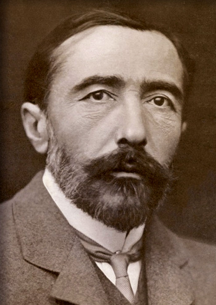 جوزف کُنراد با نام تئودور یُزِف کنراد نالچ کوژِینوسکی در سال ۱۸۵۷ در بردیچیف، امپراتوری روسیه (پادولیای، اوکراین کنونی) متولد شد، دشتی حاصلخیز بین لهستان و روسیه که زمانی بخشی از خاک لهستان بود و بعد جزو روسیه شد. این منطقه از ملیتهای مختلفی تشکیل شده بود که چهار مذهب و چهار زبان و چندین طبقهٔ اجتماعی داشتند. آن بخشی که ساکنینش به زبان لهستانی حرف میزدند، و خانوادهٔ کنراد هم از آنها بود، آبا و اجدادی از طبقهٔ سلاچتا بودند که طبقهای پایینتر از آریستوکراتها بود، ثروتمند و اصیل و دارای قدرت سیاسی بودند. آپولو کورزینوسکی، پدر کنراد، شاعر و مترجم ادبی از زبانهای انگلیسی و فرانسه بود و جوزف در بچگی رمانهای انگلیسی را به زبانهای فرانسه و لهستانی پیش پدرش میخواند. آپولو کورزینوسکی که در گیر فعالیتهای ضد تزاریستها شده بود، در سال ۱۸۶۱ با خانوادهاش به ولگودا در شمال روسیه تبعید شد. در این سفر جوزف مبتلا به سینهپهلو شد و در سال ۱۸۶۵ مادرش به همین مرض فوت کرد. پدر کنراد که تعلیم او را به عهده گرفته بود در سال ۱۸۶۹ به مرض سل درگذشت. جوزف را به سوئیس، پیش داییاش «تادئوس بابروسکی» که تأثیر زیادی در زندگی کنراد داشت، فرستادند. جوزف که اصرار داشت داییاش اجازه دهد دریانورد شود، در سال ۱۸۷۴ به فرانسه رفت و چند سالی در آنجا زبان فرانسهاش را بهتر کرد و دریانوردی آموخت. در فرانسه با محافل زیادی آشنا شد ولی به قول خودش دوستان بوهمیاییاش بودند که او را با نمایشنامه و اوپرا و تأتر آشنا کردند. در همین مدت ارتباط خوبی هم با دریانوردان داشت و چیزی نگذشت که دیدهبان قایقهای راهنما شد. کارگرانی که در کشتی دید و کارهایی که به او تحمیل کردند، همه زمینهای برای جزئیات درخشان رمانهایش شد. کنراد تا سال ۱۸۹۴ که در انگلستان مستقر شد و وقت خود را به ادبیات اختصاص داد، به استرالیا، نقاط مختلف اقیانوس هند، برونئی، آمریکای جنوبی و جزایر اقیانوس آرام سفر کرد. در سال ۱۸۹۶ با جسی جورج ماشیننویس ازدواج کرد و به کنت نقل مکان کردند.