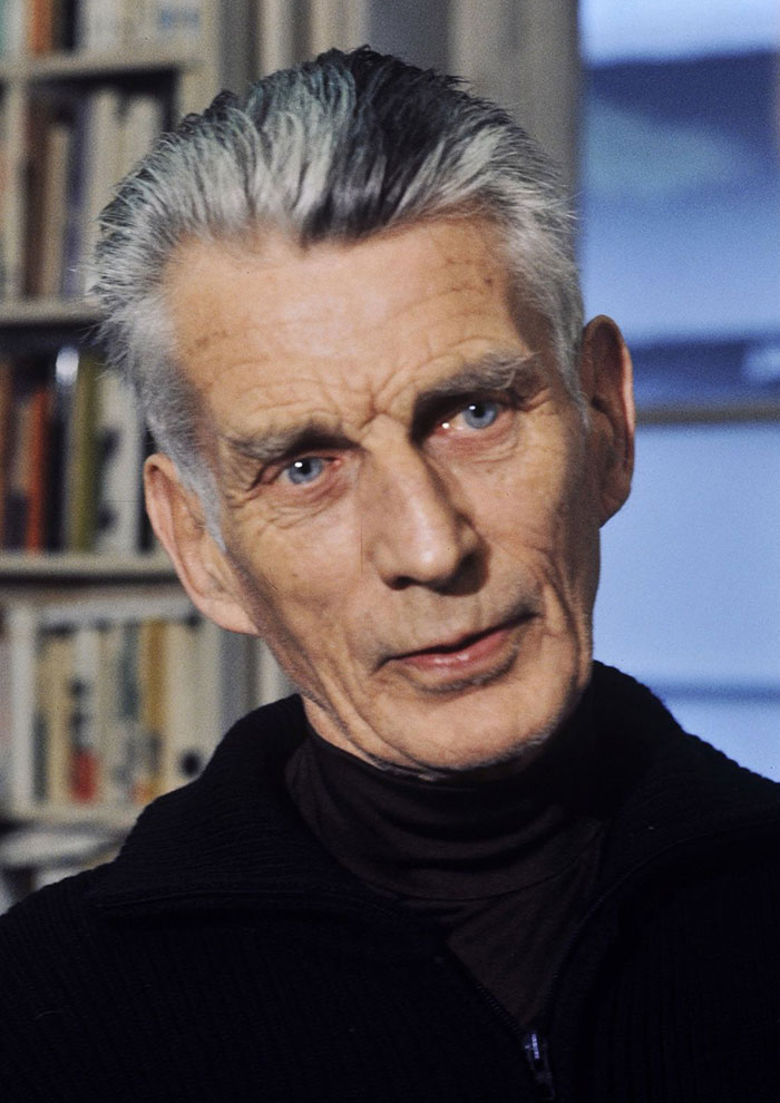 ساموئل بکت متولد 13 آوریل 1906 نمایشنامهنویس، رماننویس و شاعر اهل ایرلند بود. او در سال ۱۹۶۹ به دلیل «نوشتههایش - در قالب رمان و نمایش - که در فقر [معنوی] انسان امروزی، فرارَوی و عروج او را میجوید»، جایزه نوبل ادبیات را دریافت نمود. آثار بکت بیپروا، به شکل بنیادی کمینهگرا و بنابر بعضی تفسیرها در رابطه با وضعیت انسانها عمیقاً بدبینانهاند. این حس بدبینی اغلب با قریحهٔ طنزپردازی قوی و غالباً نیشدار وی تلطیف میگردد. چنین حسی از طنز، برای بعضی از خوانندگان آثار او، این نکته را دربردارد که سفری که انسان به عنوان زندگی آغاز کردهاست با وجود دشواریها، ارزش سعی و تلاش را دارد. آثار اخیر او، بُنمایههای موردنظرشان را به شکلی رمزگونه و کاهشیافته مطرح میکنند. بکت در خانوادهای مرفه و مذهبی (پروتستان) بزرگ شده و تا اتمام تحصیلات دانشگاهی و شروع کارش به عنوان استاد هنوز باور مذهبی داشتهاست. پس از ترک قطعی محیط آکادمیک و مهاجرتش به پاریس، گسست از مذهب را در آثارش منعکس میکند. با اجرای در انتظار گودو در سال ۱۹۵۳ تماشاگر با اعلان جنگی شوک آور علیه خدا و مذهب روبرو میشود. بکت در آثار دیگرش هم با طنز تندی به اصول کاتولیسیسم برخورد میکند.